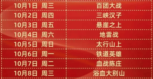 8月23日-10月7日,每周六(27日除外)及整个国庆假期(4日除外)的晚上19:00