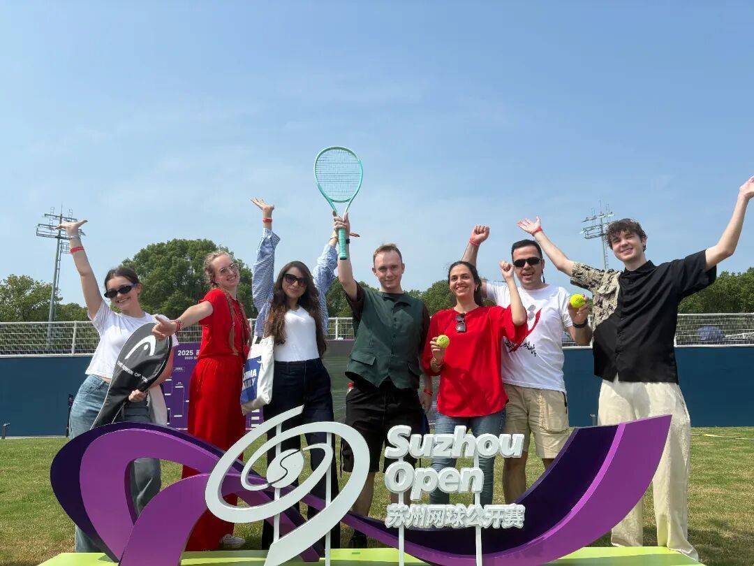 当天的体验从新建元国际网球中心拉开序幕,在现场观看了紧张激烈的2025苏州WTA125国际网球公开赛后,外籍达人们充分感受到园区承接国际顶级赛事的活力与专业。